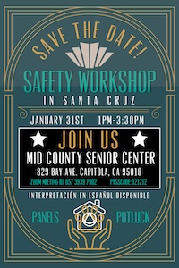 The Joint Committee on Safety Events Planning meets every 4th Thursday at 6:00 PM on Zoom. Use Meeting ID: 892 3730 0658 Passcode: 857738. Contact safety@aasantacruz.org for meeting location.